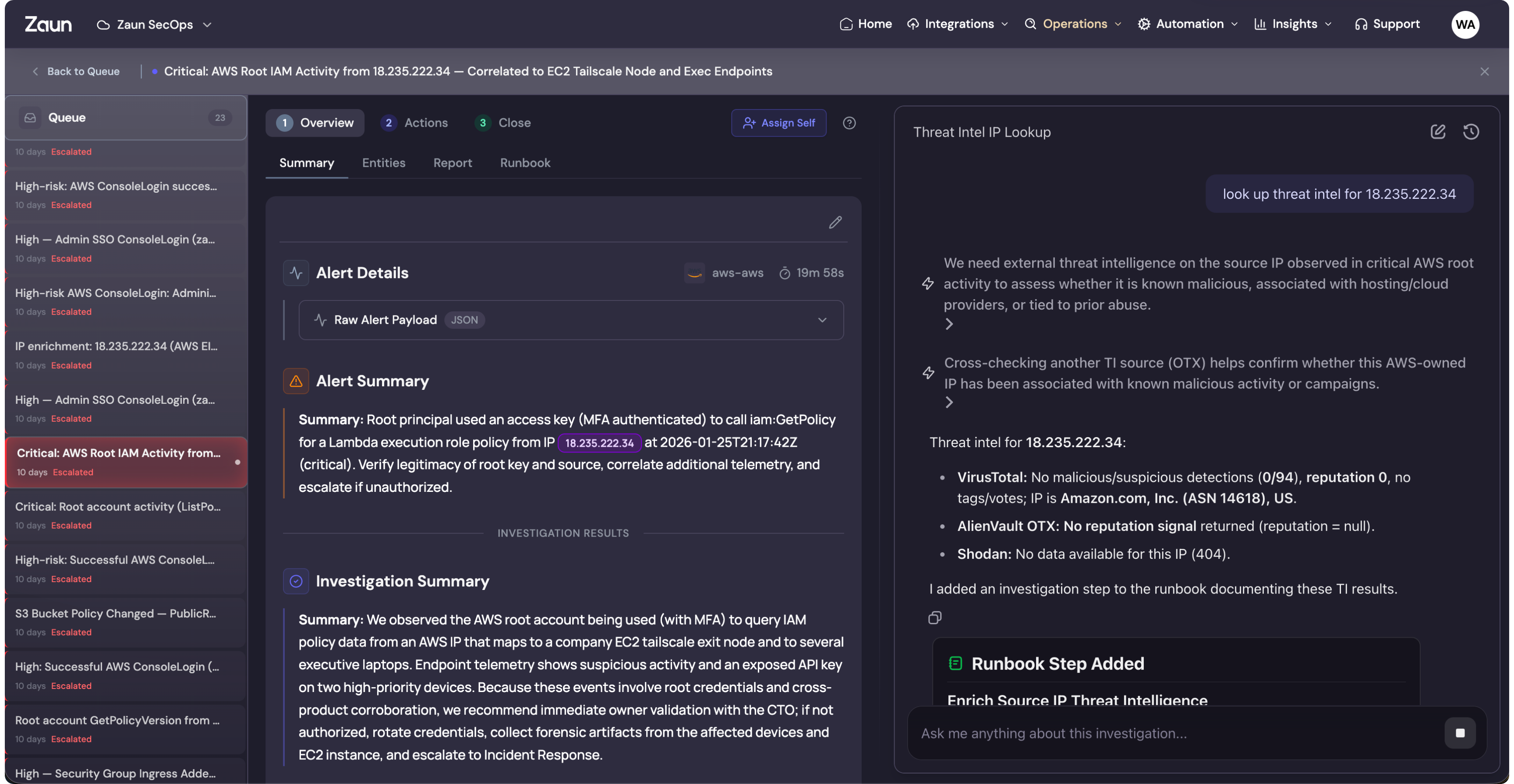 Start with Zaun for visibility, runbooks, and control alongside your current setup. When you're ready, add 24/7 MDR coverage — on the same workflows, same evidence, same tuning loop. No migration, no re-onboarding.